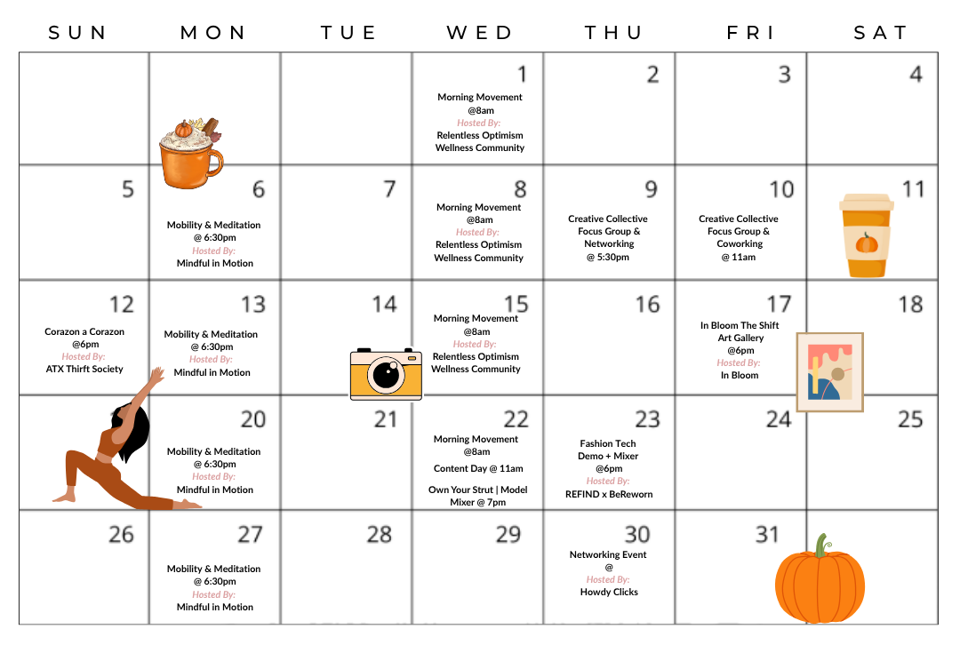 A space for women-led events, classes, and community gatherings in Austin, Texas, offering a unique blend of creativity, empowerment, and connection.